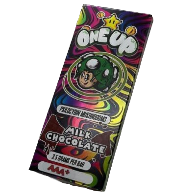One Up Milk Chocolate Mushroom Bar is a delightful fusion of rich milk chocolate and the natural goodness of mushrooms.